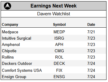 Earnings season is picking up and I will be watching my watchlist closely for opportunities to share. Here’s a list of Davem Watchlist companies reporting next week:
